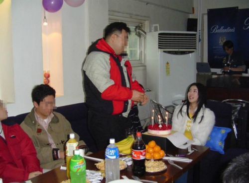 우선 사진 속 조촐한 생일상이 눈길을 끈다. 탁자에는 생일케이크와 탄산음료, 바나나, 귤, 과자가 놓여있다.