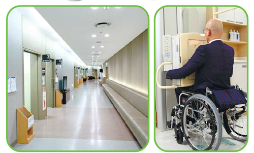 | 서울의료원 중증장애인 검진센터의 ‘무장애’ 시설 모습. 서울의료원은 전동 휠체어가 쉽게 다닐 수 있도록 복도를 넓히고 장애인용 체성분 분석기, 검진용 침대, 엑스레이 등을 설치했다. 서울의료원 제공 |