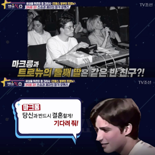 방송인 붐은 두 사람이 연인으로 발전하게 된 사연을 공개했다. 붐은 "마크롱은 연극부 선생님이었던 트로뉴를 보기 위해 연극부에 가입했다"고 말했다.