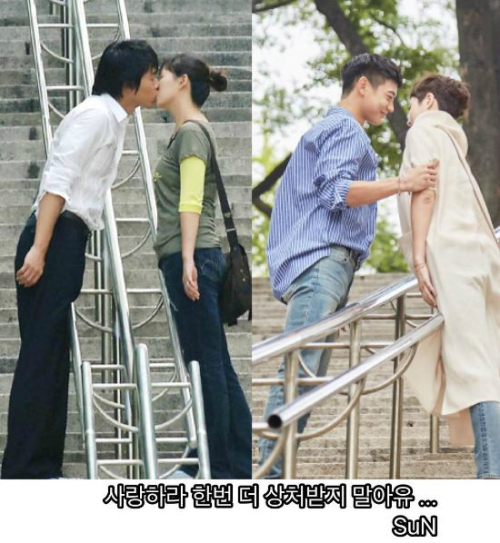 김선아는 계단 키스 장면을 찍은 드라마 '내 이름은 김삼순'의 엔딩 신 장면을 민호와 함께 다시 한번 연출했다.