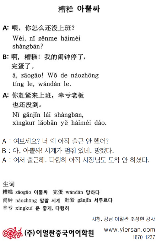 [이얼싼 중국어 회화] 아뿔싸 입력 : 2017-08-24 20:10:58 수정 : 2017-08-24 20:10:57 구글 네이버 유튜브 Copyright ⓒ 세계일보. 무단 전재 및 재배포 금지 세계일보 조선미