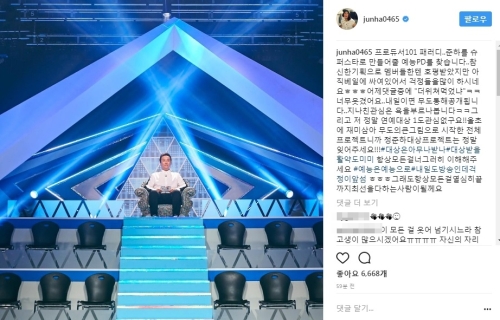 프로듀서101 패러디..준하를 슈퍼스타로 만들어줄 예능PD를 찾습니다..참신한 기획으로 멤버들한텐 호평받았지만 아직 베일에 싸여 있어서 걱정들을 많이 하시네요"라며 "어제 댓글중에 "더위쳐먹었냐"ㅋㅋ너무 웃겼어요.. 내일이면 무도 통해 공개됩니다..지나친 관심은 욕을 부르나 봅니다
