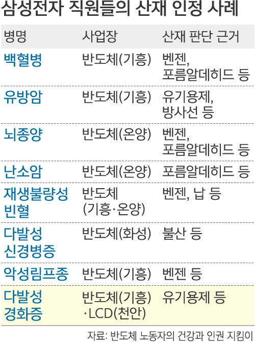 대법원까지 올라온 삼성전자 반도체·LCD 노동자의 산재 사건 중에서 업무와 질병 발생·악화 간의 인과관계를 전향적으로 인정하며 근로자 손을 들어 준 첫 사례다. 특히 대법원은 삼성이나 노동청이 ‘업무상 비밀’이란 이유로 유해화학물질 자료 제출에 소극적이었던 점을 지적하며 이를 근로자에게 유리한 간접 증거로 봤다.