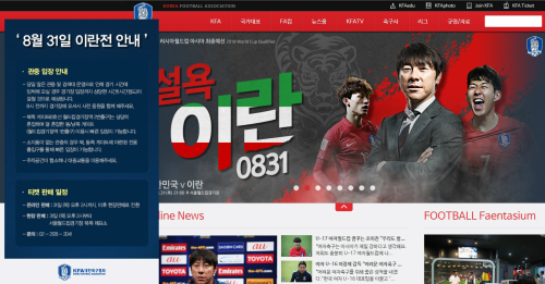 대한축구협회가 홈페이지를 통해 31일 치를 2018 러시아 월드컵 최종예선 이란전 관중 입장 안내를 공지했다. 사진=대한축구협회 홈페이지 캡처