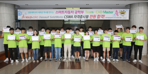 | CSWA 메커니컬 디자인 분야 인증서를 획득한 선문대 스마트자동차공학부 1학년 학생들. 선문대 제공 |