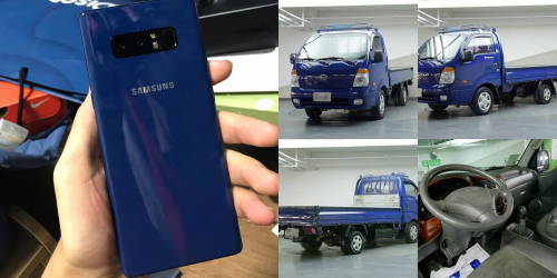 | 삼성전자 스마트폰 '갤럭시노트8'의 딥씨블루 모델(왼쪽 사진)이 출시를 앞두고 용달차와 비슷한 색상으로 주목받고 있다. 사진=인스타그램 |