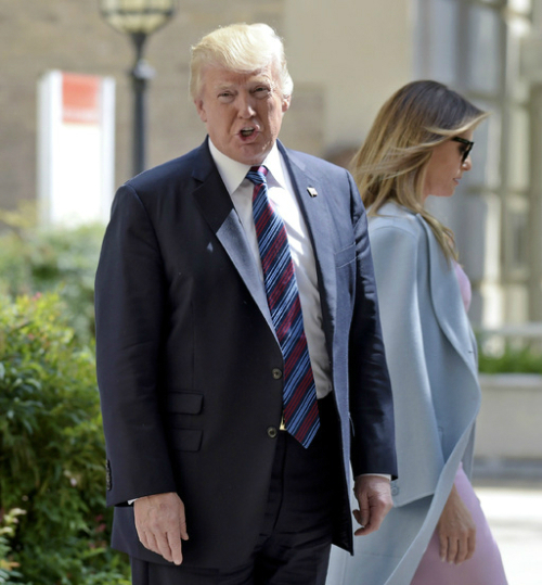 | 도널드 트럼프 미국 대통령이 3일(현지시간) 부인 멜라니아 여사와 워싱턴 세인트존스 교회에서 허리케인 ‘하비’ 희생자들을 위한 미사를 마치고 나오는 도중 “북한을 공격할 계획이 있느냐”는 기자들 질문에 “두고 보자”(We’ll see)고 대답하고 있다. 워싱턴=AP연합뉴스 |