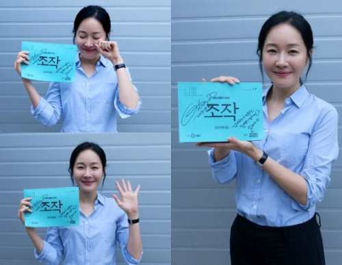 공개된 사진 속 엄지원은 "감사하고 행복한 촬영이었어요. 소라가!"라며 친필 메시지가 담긴 '조작' 마지막 회 대본을 들고 있다. 사진의 배경은 엄지원의 온기가 묻어있는 검사실이다.