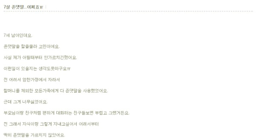아이의 존댓말과 관련한 어느 네티즌의 고민. 온라인 커뮤니티 캡처.