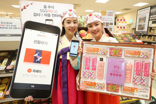 “추석선물 SSG머니로 준비하세요” 입력 : 2017-09-17 22:19:22 수정 : 2017-09-17 22:19:22 구글 네이버 유튜브 17일 오전 서울 이마트 용산점에서 모델들이 추석을 앞두고 SSG페이에 탑재된 ‘SSG머니 선물하기’ 기능을 소개하고 있다. SSG머니 선물하기는 휴대전화 번호만 알면 온·오프라인에서 현금처럼 쓸 수 있는 SSG머니를 쉽고 간편하게 선물할 수 있는 기능이다. <연합>연합> Copyright ⓒ 세계일보. 무단 전재 및 재배포 금지 연합 김수미