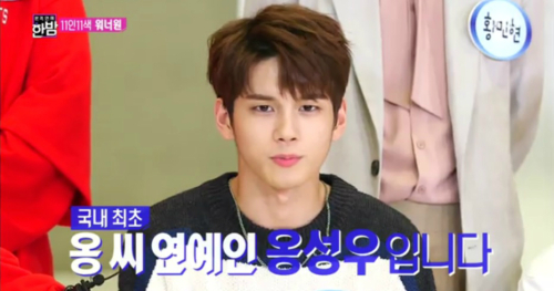 이날 방송에서 옹성우는 자신의 이름을 소개하면서 "국내 최초 '옹'씨 연예입니다"라고 말했다.
