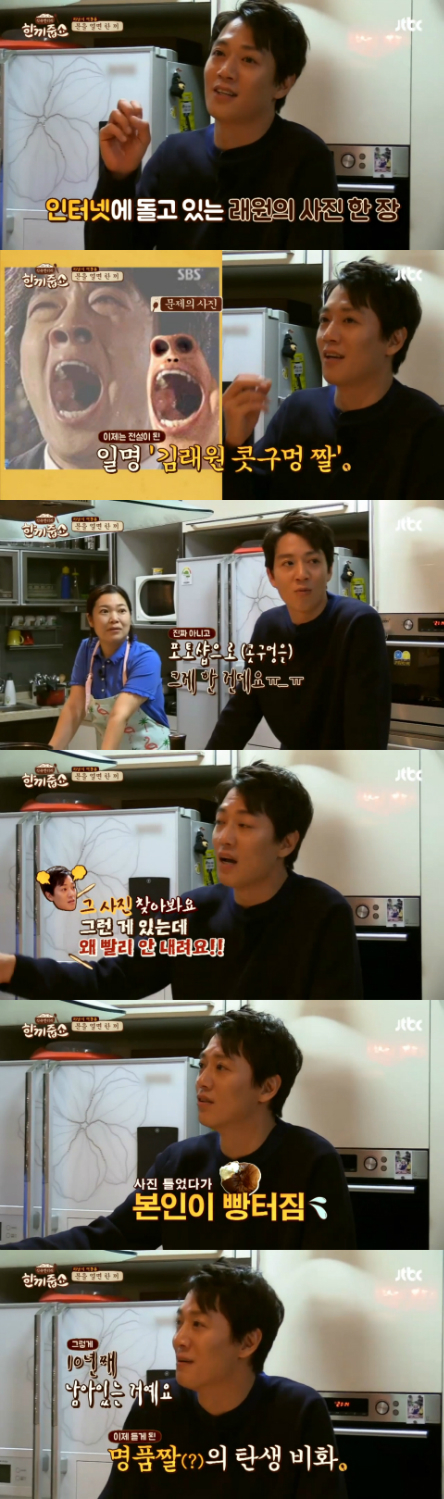 | 김래원이 20일 JTBC '한끼줍쇼'에 출연해 일명 '콧구멍 짤'로 불리는 사진에 대한 뒷얘기를 설명하고 있다. 사진=JTBC 캡처 |