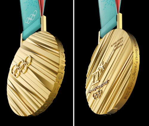 지름 92.5㎜, 금메달 586g, 은메달 580g, 동메달 493g의 무게로 제작된 평창올림픽 메달과 리본은 우리 문화의 상징인 한글과 한복을 주된 모티브로 ‘한국적 세련미’를 표현하는 데 초점을 맞췄다. 메달 앞면에는 좌측 상단에 오륜이 배치됐고, ‘선수들의 노력과 인내’를 표현한 역동적인 사선이 펼쳐진다. 뒷면에는 대회 엠블럼과 세부 종목명을 새겼다. 메달을 걸 리본에는 전통 한복 특유의 갑사(고급 비단)를 소재로 한글 눈꽃 패턴과 자수가 적용돼 한국의 멋을 살렸다.