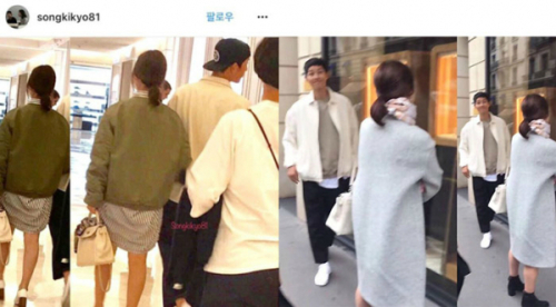 최근 두 사람의 팬 페이지와 팬들의 SNS에 '송송커플'의 다정한 사진이 다수 올라왔다. 파리 쇼핑몰 등에서 팔짱을 낀 채 데이트를 즐기는 모습이다. 송중기가 송혜교를 바라보며 환한 미소를 짓고 있는 사진도 있다. 이들은 예비부부답게 주변 시선에 아랑곳하지 않고 공개 데이트를 즐겼다.
