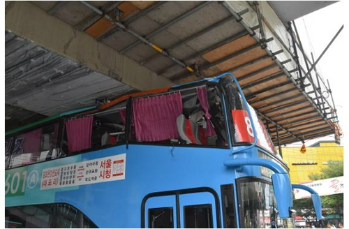 2층 버스 높이는 4m인데, 사고가 난 고가철도 하부 통과제한 높이는 3.5m이기 때문. 작년 12월에도 같은 장소에서 똑같은 사고가 있었다.