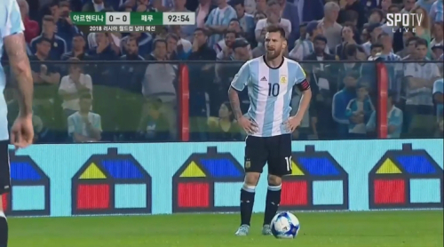| 6일 오전 진행된 2018 러시아월드컵 남미예선 18차전 아르헨티나-페루 경기에서 아르헨티나의 리오넬 메시(사진)가 프리킥을 준비하고 있다. 사진=스포티비 캡처 |