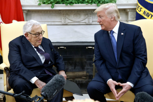 트럼프 대통령이 ‘전쟁광’이라는 일각의 비판을 받는 키신저를 만난 것도 예사롭지 않다. 키신저는 최근 중국이 김정은 정권 붕괴를 이끌어내면 한반도에서 미군을 철수하는 ‘미·중 빅딜론’을 제기한 바 있다. 트럼프 대통령은 내달 한국, 중국, 일본 방문을 앞두고 있어 키신저의 구상이 새삼 주목을 받는다. 키신저는 트럼프가 대선후보로 나설 때부터 그에게 외교정책에 관해 조언하고 있다.