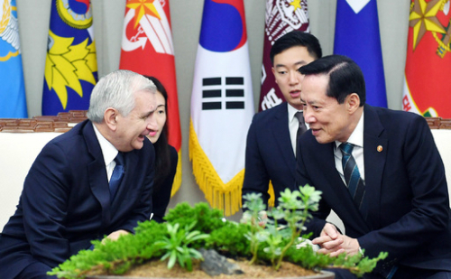 | 美 상원의원과 면담하는 宋 국방 송영무 국방부 장관(오른쪽)이 11일 서울 용산구 국방부청사에서 방한 중인 잭 리드 미국 상원의원(상원 군사위원회 민주당 간사)을 만나 북한의 핵·미사일 위협 대응 방안을 논의하고 있다. 리드 상원의원은 이어 서울 종로구 도렴동 외교부청사로 강경화 외교부 장관을 예방해 한·미관계 강화를 위한 의견을 교환했다. 국방부 제공 |