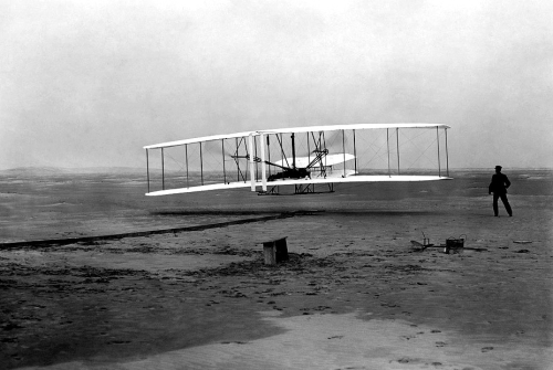 | 1903년 12월17일 미국 노스캐롤라이나주의 키티호크에서 윌버, 오빌 라이트 형제가 첫 유인 동력기 비행시험에 성공하는 장면. 라이트 형제는 이 성공을 위해 1000번이 넘는 실험을 반복했다. 출처=픽사베이 |