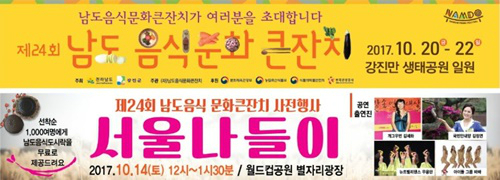 한편, ‘남도음식문화큰잔치’는 20일에 개막하여 22일까지 사흘간 전라남도 강진군 강진읍 강진만 생태공원 일원에서 열린다.
