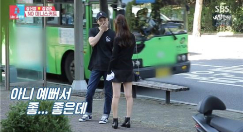 배우 강경준이 여자친구 장신영의 짧은 치마를 단속했다.