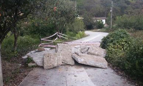 그리고 도로 콘크리트 포장을 중장비로 파헤쳐 통행을 막았다.