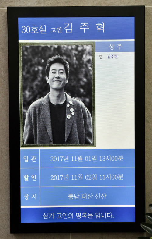 | 故 김주혁 빈소 안내 전광판의 모습. 사진 공동취재단=연합뉴스 |