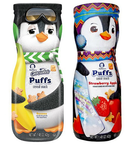 ▲ 거버 펭귄 퍼프 사과 딸기 ▲ 거버 펭귄 퍼프 바나나 총 2가지 종류로 구성된 ‘거버 펭귄 퍼프’는 철분, 비타민E, 비타민B1, 비타민B6, 니아신 등 5가지 비타민과 미네랄이 함유된다. 영양균형을 고려한 거버 퍼프는 통밀 가루와 통귀리 가루로 만들어진 건강한 간식으로 흥미를 자극하는 모양과 크기로 집어먹기 편리하다. 또 입 안에서 빠르고 부드럽게 녹아 섭취가 편리하다.