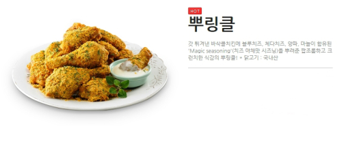 BHC의 '뿌링클 치킨'. 사진=BHC 홈페이지 캡처