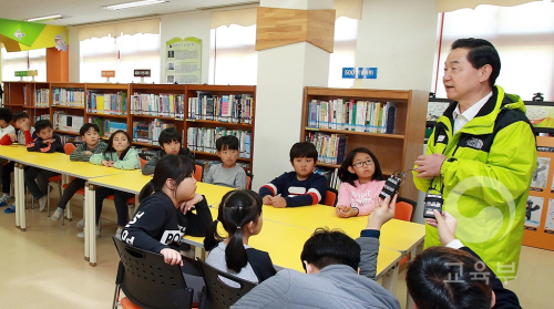 | 김상곤 부총리 겸 교육부 장관(오른쪽)이 9일 강원 평창군 횡계초등학교를 방문해 동계올림픽 기념 계기수업을 진행하고 있다. 교육부 제공 |