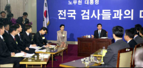 이런 가운데 2003년 3월9일 대통령과 검사 10명이 나란히 앉아 사전 각본 없이 토론을 펼치는 전무후무한 일이 벌어졌다. TV로 생중계된 '대통령과 검사의 대화'는 토론 프로그램이었지만 27.3%라는 높은 시청률을 보였다.