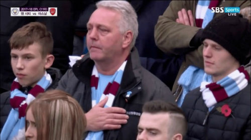 지난 5일(한국시간) 펼쳐진 맨체스터 시티와 아스날의 11라운드 경기에서 영국인으로 보이는 한 남성이 ‘(주)신창중공업’이라는 한국 기업의 이름이 박혀 있는 점퍼를 입고 있는 모습(사진)이 포착됐다.