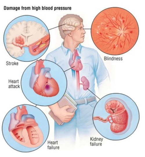 | 고혈압은 뇌경색, 심근경색, 심장마비, 콩팥손상 등 인체에 치명적인 해를 끼친다. 미국 의학계는 고혈압 기준을 종전 140에서 130으로 대폭 낮춰 혈압관리의 중요성을 강조했다. |