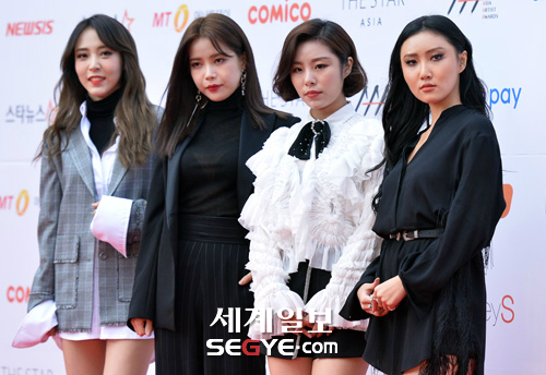 걸그룹 마마무가 15일 오후 서울 송파구 잠실동 잠실실내체육관에서 열린 '2017 아시아 아티스트 어워즈'에 참석해 포즈를 취하고 있다.