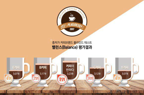 예상과 달리 순위는 판매가의 역순으로 나타났다. △신맛(Acidity) △단맛(Sweetness) △향미(Flavor) △촉감(Body) △후미(Aftertaste) △밸런스(Blance) △종합(Overall) 총 7개 항목 심사를 기준으로 평가했고 배점기준에 따른 최종평가 점수로 순위를 정한 결과 1위를 차지한 커피는 5종중 가장 저렴한 ‘커피에 반하다’의 아메리카노로 1000원대의 커피가 1위에 오른 것이다.