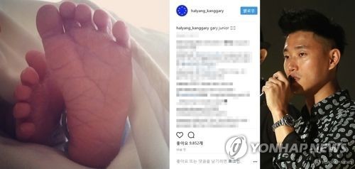 개리는 이날 인스타그램에 아기의 발 사진을 올리고 "개리 주니어"라고 썼다.