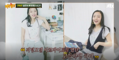 이날 구하라는 연습생 시절 서울에서 홀로 생활하던 과거를 공개했다. "고등학생 시절 생활비를 벌기 위해 피팅모델 아르바이트를 했다"며 남들보다 두 배로 바쁘게 살았던 일화를 공개했다. 당시 시급 4,500원을 받았다고.