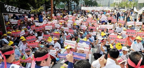 | 경기 용인시민들이 상수원보호구역으로 어려움을 겪고 있다며 해제를 요구하는 시위를 벌이고 있다. 용인시 제공 |