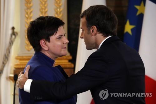 에마뉘엘 마크롱 프랑스 대통령과 베아타 시드워 총리는 23일(현지시간) 파리 엘리제궁에서 정상회담을 하고 동유럽 출신 근로자들의 서유럽 파견 문제 등 유럽연합과 양국 간 현안을 논의했다.