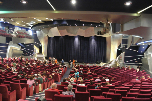 | 크루즈의 극장에서 몰타공화국 수도 발레타 기항지에 내리기 전 관광 코스와 언어에 따라 팀을 나누고 있다. |