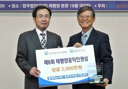 동천에 따르면 2010년 제정한 태평양공익인권상은 매년 공익활동을 통해 우리 사회의 인권 향상에 기여하고 사회의 귀감이 되는 개인 혹은 단체에게 수여하고 있다. 올해 제8회 수상자로 뽑힌 탈북민취업지원센터는 지난 10년간 북한이탈주민들이 우리 사회에 성공적으로 정착해 건강한 사회 구성원이 될 수 있도록 취업 지원 등 다양한 프로그램을 성공적으로 수행해왔다.수상자로 선정됐다.