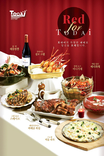 이와 관련 토다이 측은 “연말과 신년 파티 분위기를 고려해 보다 화려하고 다채로운 메뉴를 기획하게 되었다”면서 “앞으로도 시즌과 고객의 니즈에 맞춘 다양한 콘셉트의 신메뉴를 출시할 예정”이라고 전했다.