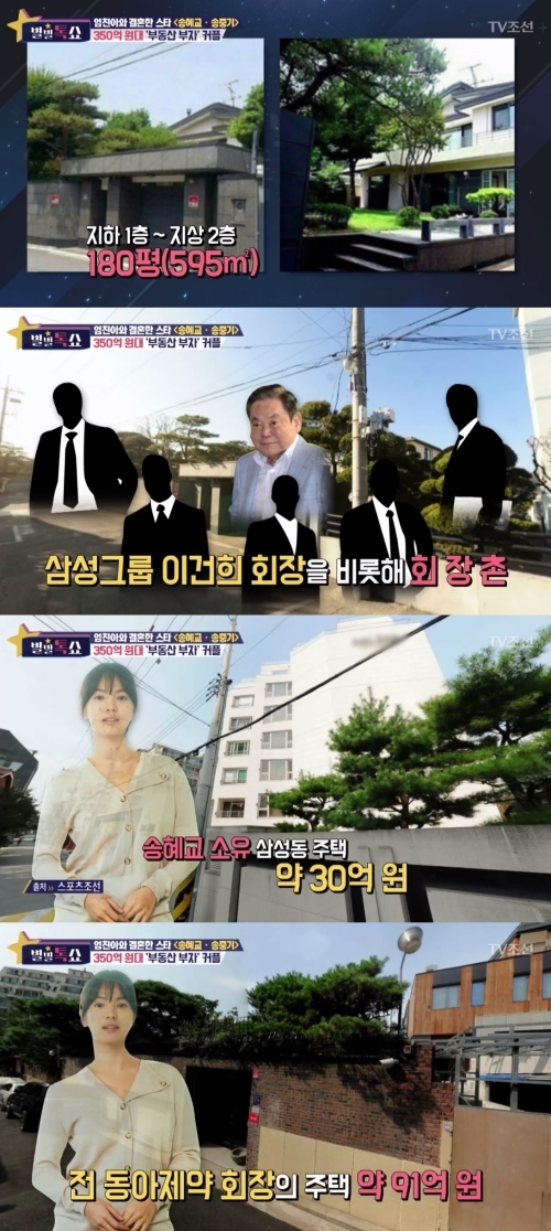 이를 다 합친 '송송부부'의 부동산 자산은 합산 350억원대인 것으로 전해졌다.