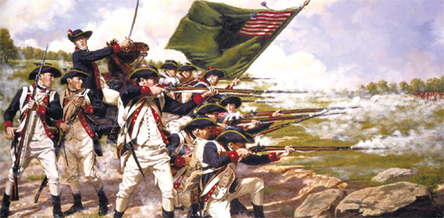 | 미국에서 현인으로 인정받는 노엄 촘스키는 책에서 “건국 초기의 자유 평등 사상을 잃어버린 미국은 다음 선거에서 선거혁명을 이뤄내자”고 촉구했다. 사진은 미국 독립전쟁 당시 아메리카 대륙군의 전투 장면을 그린 그림이다. 사회평론 제공 |