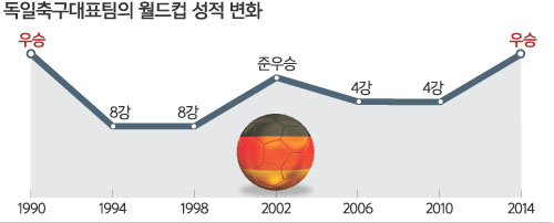 이후에도 독일 축구의 고전이 이어졌다. 유로1996에서 예상을 깨고 우승을 차지했지만 극단적 수비축구로 비아냥만 들었고, 1998년 프랑스월드컵과 유로2000에서는 8강에서 탈락했다. 어느 순간 독일 축구에 ‘녹슨 전차’라는 별명이 붙었다. 하지만 축구팬들이 잘 모르는 것이 하나 있다. 독일축구가 암흑기를 보내고 있었지만 결코 허송세월을 하지는 않았다. 자국 축구에 한계를 느낀 독일은 1990년대 중반부터 대대적 개편을 준비했고 2000년대 들어 본격적 개혁에 나섰다. 2002년부터 10년간 9000억원이 넘는 돈을 쏟아부으며 유망주 육성에 나섰고, 지도자 양성과 훈련 시설 확충 등도 게을리하지 않았다. 여기에 유망주들이 실력을 키우는 터전인 자국 리그도 지역밀착 강화와 경기장 시설 개선 등을 통해 내실을 다져 유럽 평균 관중 1위 리그로 키웠다.
