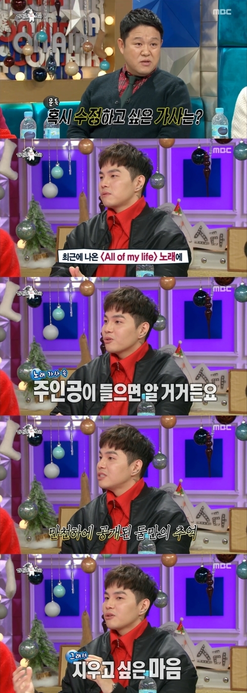 MC 김구라는 박원에게 "본인이 썼던 가사 중 내가 봐도 이건 수정하고 싶다는 생각이 드는 가사가 있냐"고 물었다.