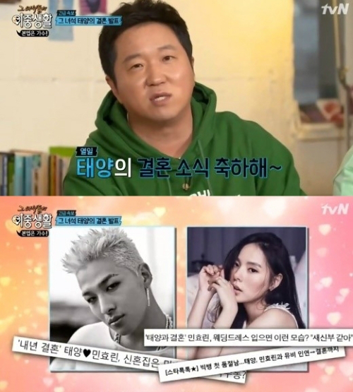 이날 녹화방송에서 정형돈과 데프콘은 "태양이 민효린과 백년가약을 맺었다", "지금 녹화하는데 실시간으로 결혼 기사가 떴다"고 전했다.