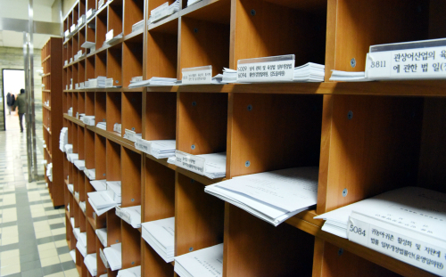 | 개헌특위 연장을 둘러싼 여야의 대립으로 12월 임시국회가 26일에도 공전을 이어가고 있다. 사진은 26일 국회 본관에 쌓여있는 법안들. 서상배 선임기자 |