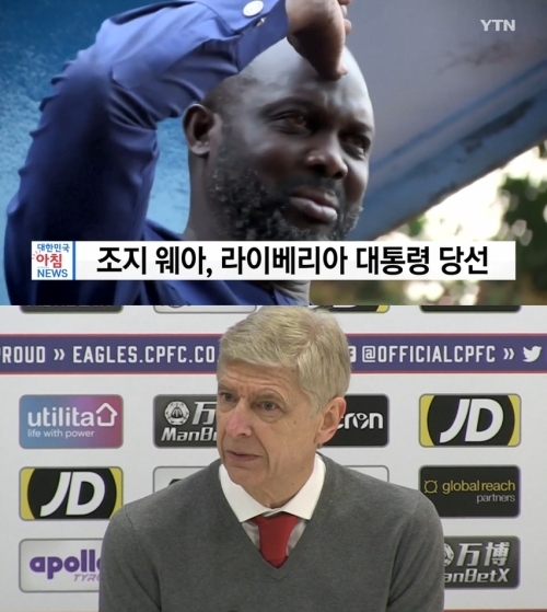 | 라이베리아 대통령에 당선된 전 축구선수 조지 웨아(위)를 과거 발탁했던 아르센 벵거 잉글랜드 프로축구 프리미어리그 소속 아스날 감독(아래). 사진=YTN·네이버'아이웨어TV'채널 캡처 |