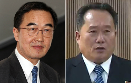 | 조명균(좌) 통일부 장관과 北 리선권 위원장. |